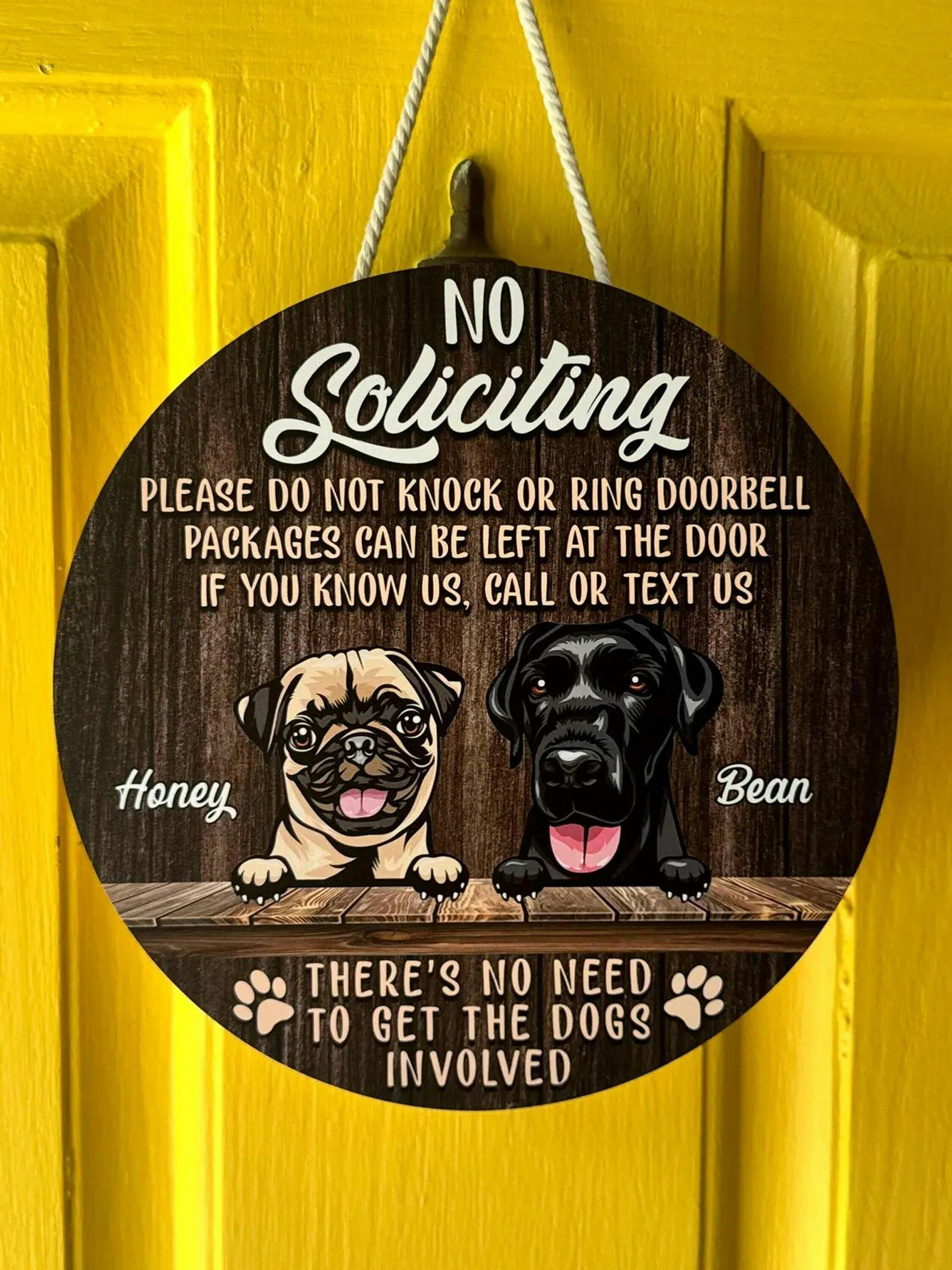 No Soliciting There's No Need To Get The Pets Involved • Customized Dog And Cat Wood Sign • Personalized Door Sign • Front Door Hanger